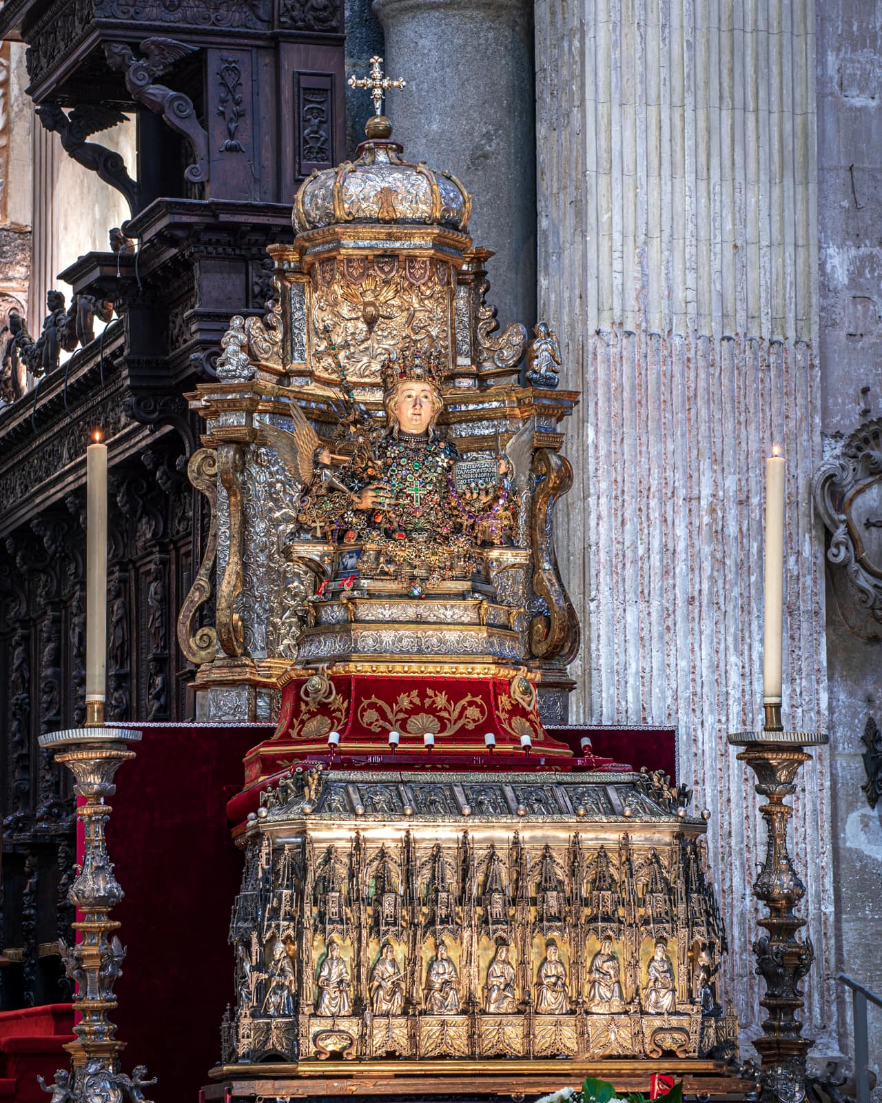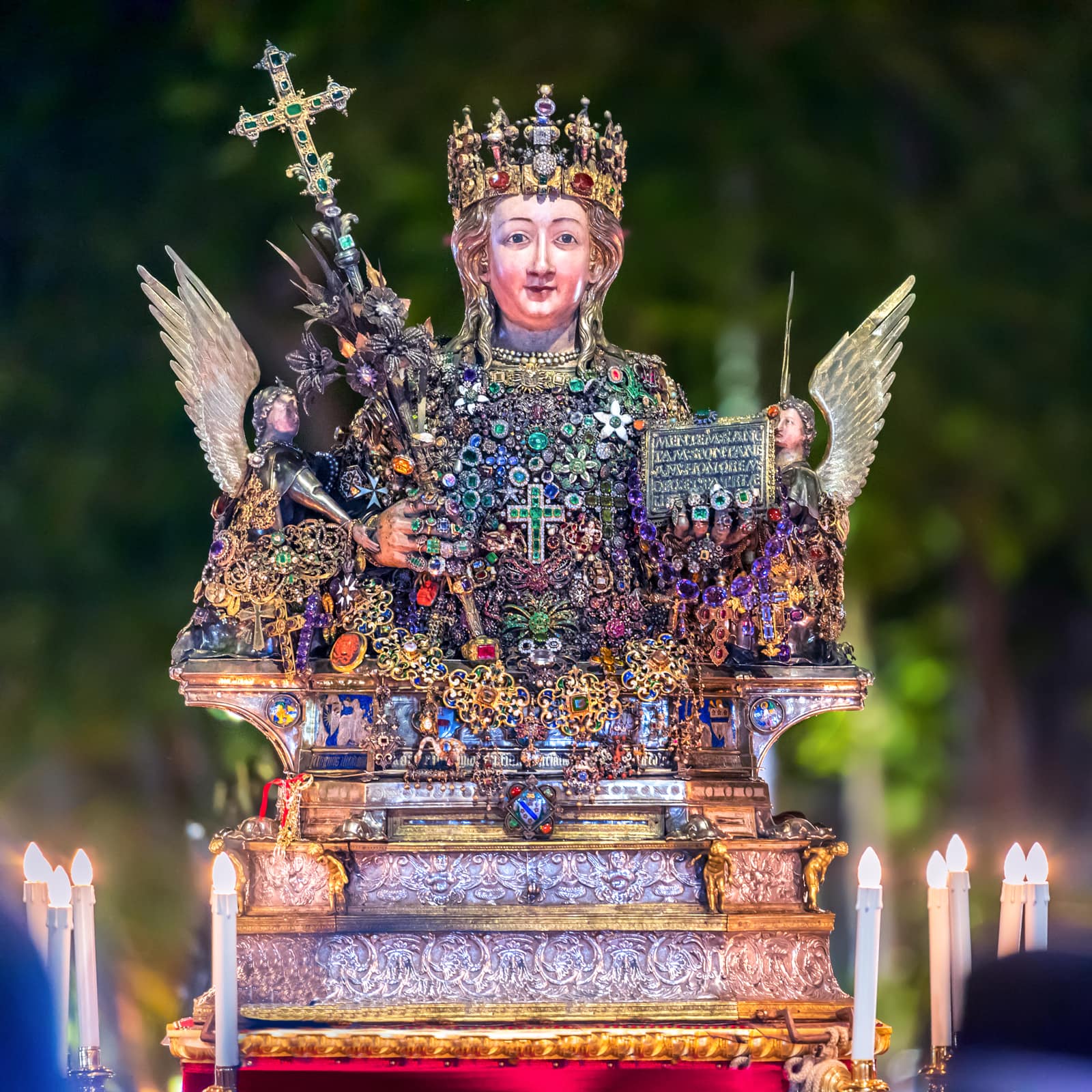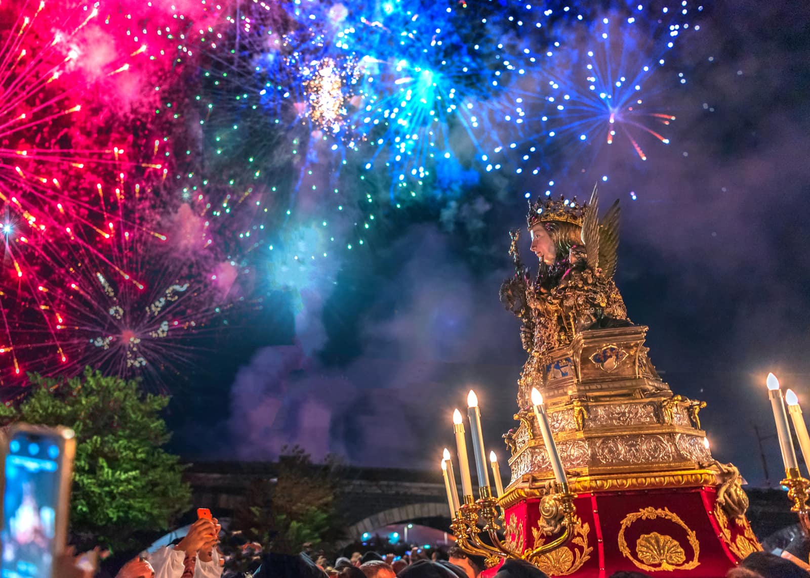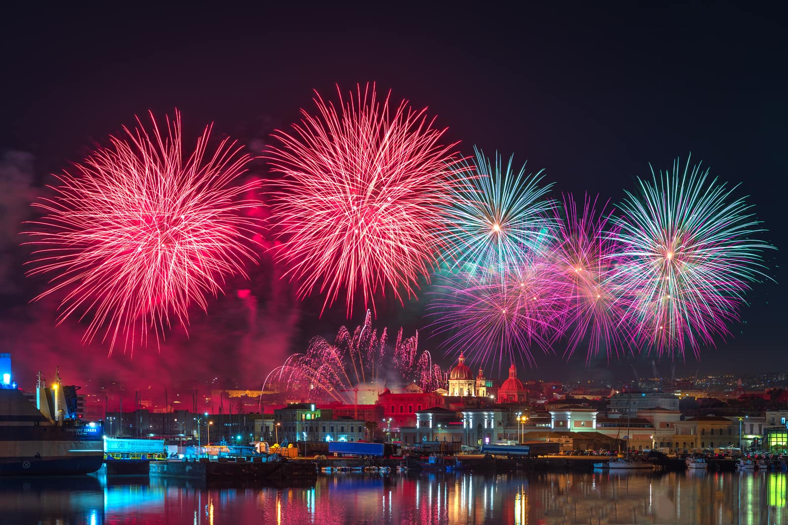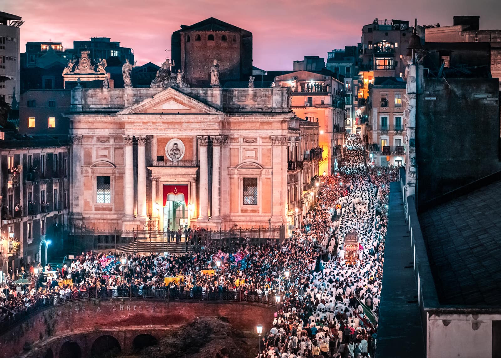 Ogni anno il 3, il 4 e il 5 febbraio Catania offre alla sua patrona una festa così straordinaria che può essere paragonata soltanto alla Settimana santa di Siviglia o al Corpus Domini di Cuzco, in Perù. In quei tre giorni la città dimentica ogni cosa per concentrarsi sulla festa, misto di devozione e di folklore, che attira ogni anno sino a un milione di persone, tra devoti e curiosi. Il primo giorno è riservato all’offerta delle candele. Una suggestiva usanza popolare vuole che i ceri donati siano alti o pesanti quanto la persona che chiede la protezione. Alla processione per la raccolta della cera, un breve giro dalla fornace alla cattedrale, partecipano le maggiori autorità religiose, civili e militari. Due carrozze settecentesche, che un tempo appartenevano al senato che governava la città, e undici “ candelore ”, grossi ceri rappresentativi delle corporazioni o dei mestieri, vengono portate in corteo. Questa prima giornata di festa si conclude in serata cori un grandioso spettacolo di giochi pirotecnici in piazza Duomo. I fuochi artificiali durante la festa di sant’Agata, oltre a esprimere la grande gioia dei fedeli, assumono un significato particolare, perché ricordano che la patrona, martirizzata sulla brace, vigila sempre sul fuoco dell’Etna e di tutti gli incendi.