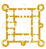 Nella sala angolare sud-occidentale furono rinvenute l'originale volta a crociera, le finestre ogivali e la porta a sesto acuto che si apriva sulla facciata meridionale accanto al torrione sud-occidentale.