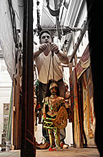 - Sistema di manovra: dai lati, a braccio teso: gli animatori sono posizionati dietro le quinte laterali del palcoscenico e poggiano i piedi sullo stesso piano di calpestio dei pupi.